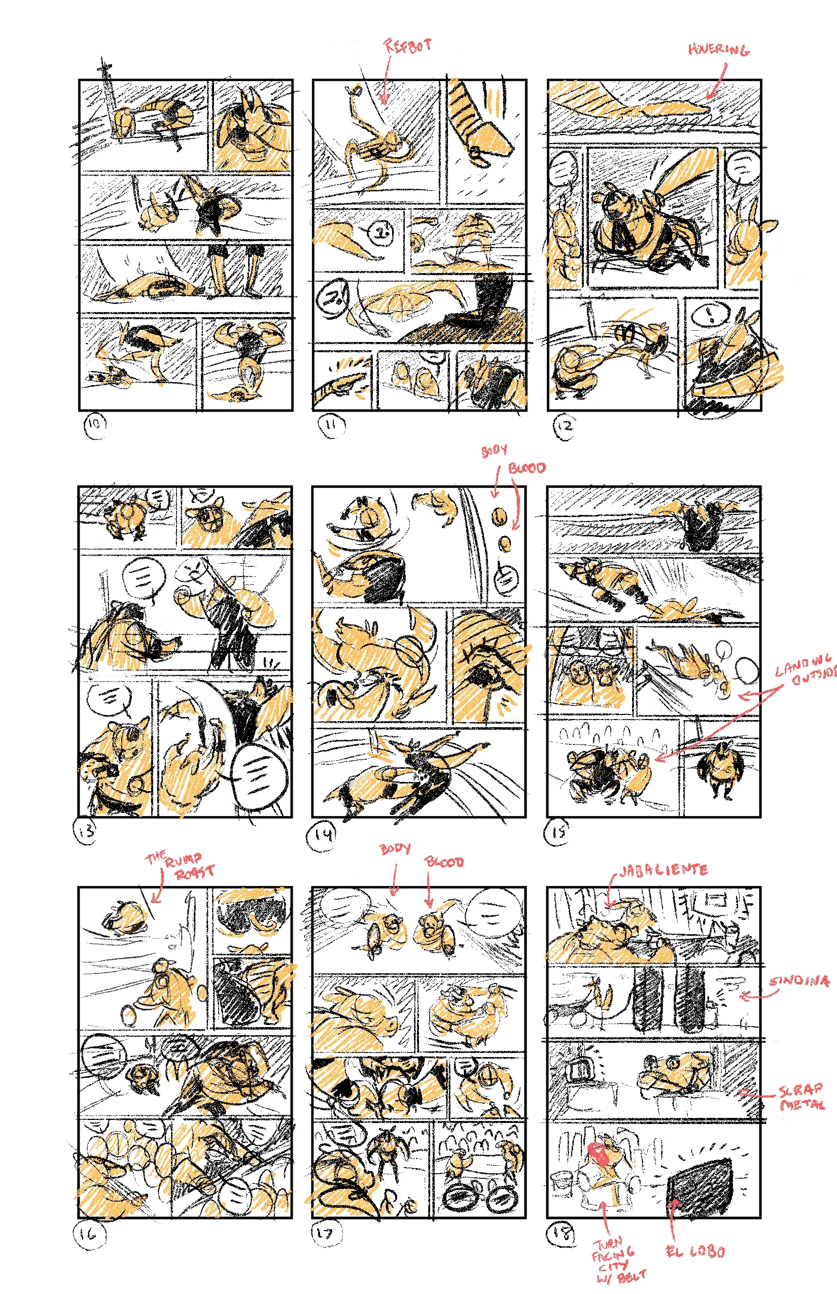 Chorizo has been originally concepted as a comic with intentions of animation, in order to share the story as best as possible with the resources currently available. Here are the layouts and storyboards for the original first issue: