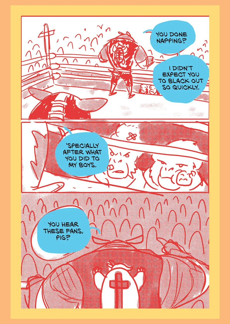 Chorizo is the story of a luchador pig in the fight for Fight City. He’s left the stability of a life as a career Ring Member and is trying to pave the way for his own championship in order to rebuild his family’s legacy. To win the city’s championship at the upcoming Fight Fest, he’ll need to earn a number of Championship Rings from the cast of Ring Leaders throughout Fight City.